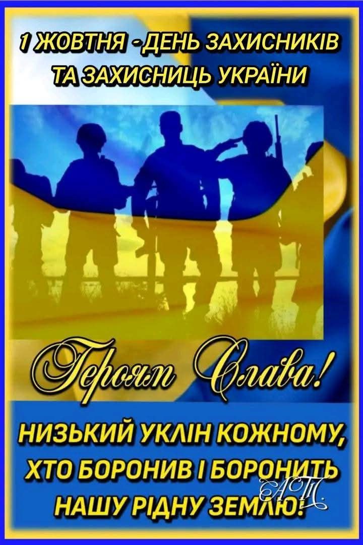 1 жовтня в Україні відзначають День захисника та захисниці України - свято мужності, відваги та патріотизму. У цей день ми вшановуємо тих, хто стоїть на захисті нашої держави та миру, і дякуємо за їхню самовідданість.